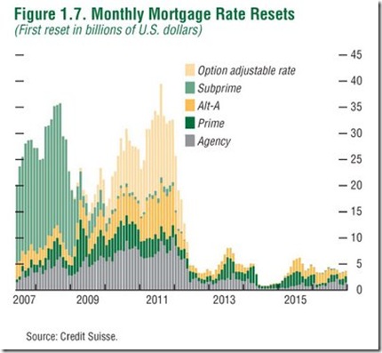…Of far more interest to Bernanke than new mortgages, however, are the masses of people in pay-option ARMs, interest-only mortgages, and regular ARMS which are about to reset.